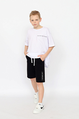 Футболка для девочки с трендовым колледж-принтом, с блестящим эффектом и контрастными бейками по горловине и рукавам. Модель сделана из 100%-хлопкового трикотажа. Материал приятно прилегает к телу, не сковывает движения и позволяет коже дышать.